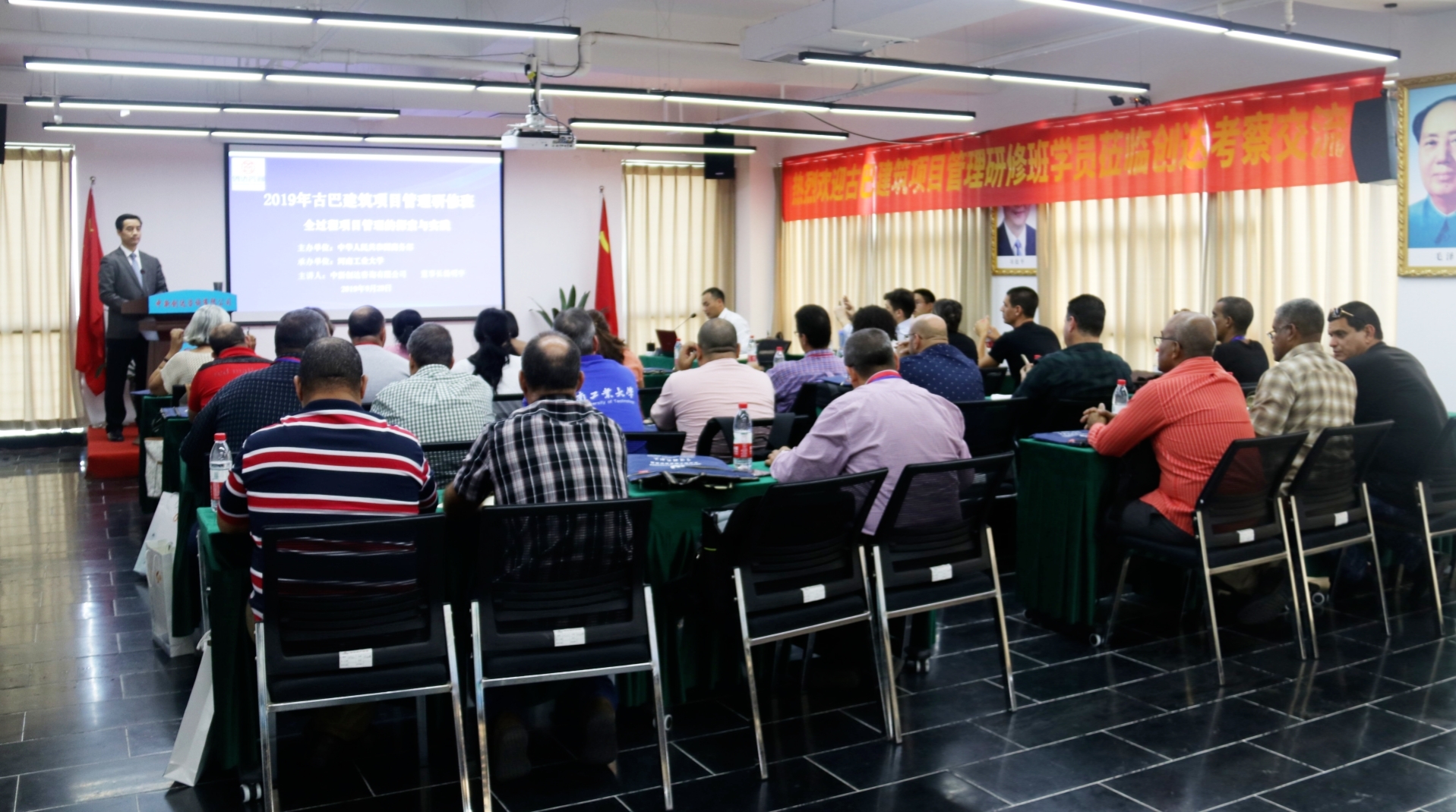 “2019年古巴建筑項目管理研修班”由古巴建筑部專家領導、古巴建筑企業高管及專業人員組成,在為期21天的培訓中,研修班學員通過中國國情概況、改革開放與“一帶一路”、 全球工程項目發展、中國工程建設、建筑工程全過程項目管理等16個專題講座及企業實地考察等方式,系統學習了建筑項目方面的專業知識,交流建筑經驗與心得,增進兩國友誼。