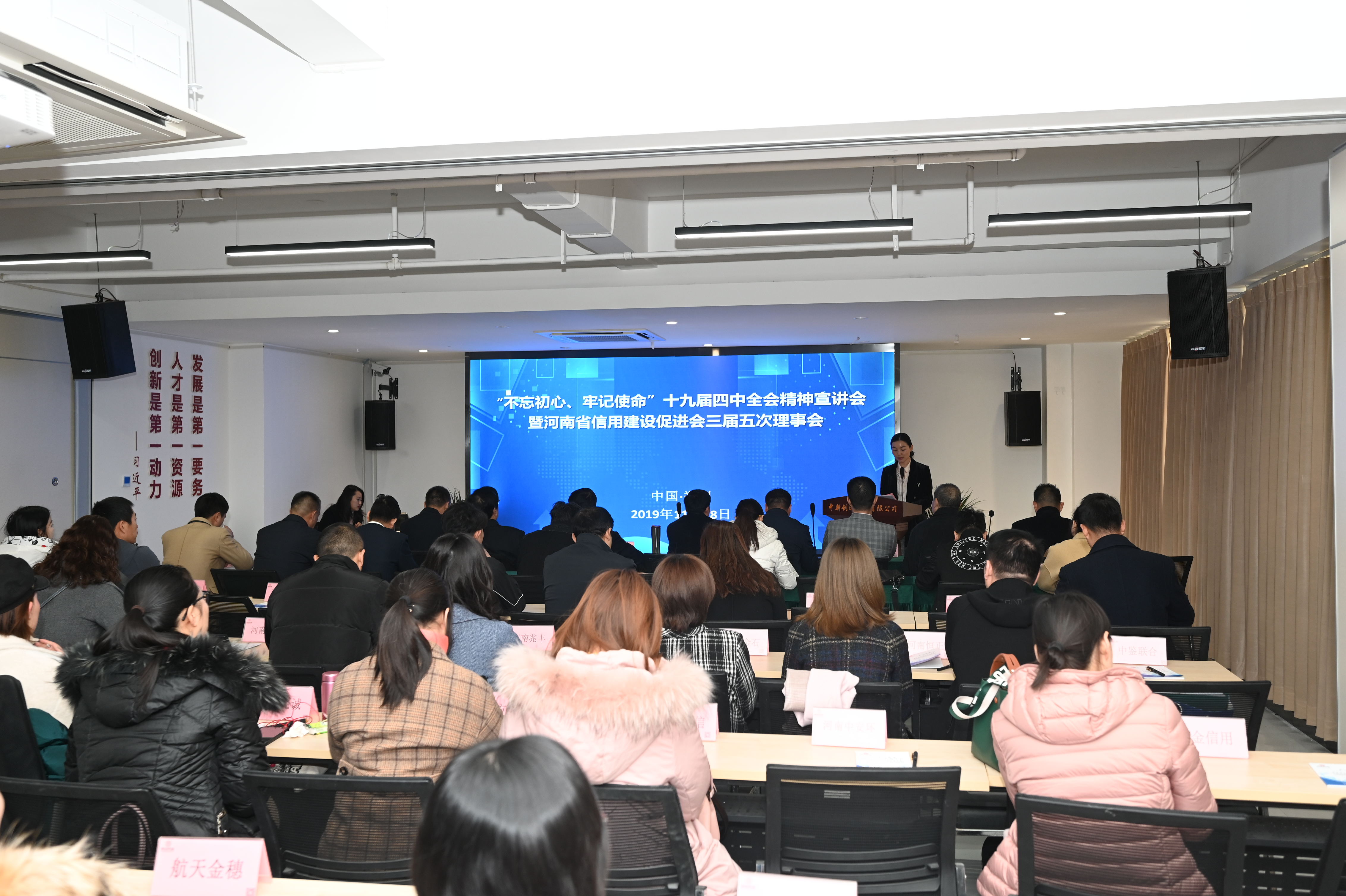 2019年11月28日,“不忘初心、牢記使命”十九屆四中全會精神宣講會暨河南省信用建設(shè)促進會三屆五次理事會在中新創(chuàng)達咨詢有限公司順利召開。公司董事長楊明宇當選河南省信用建設(shè)促進會會長。