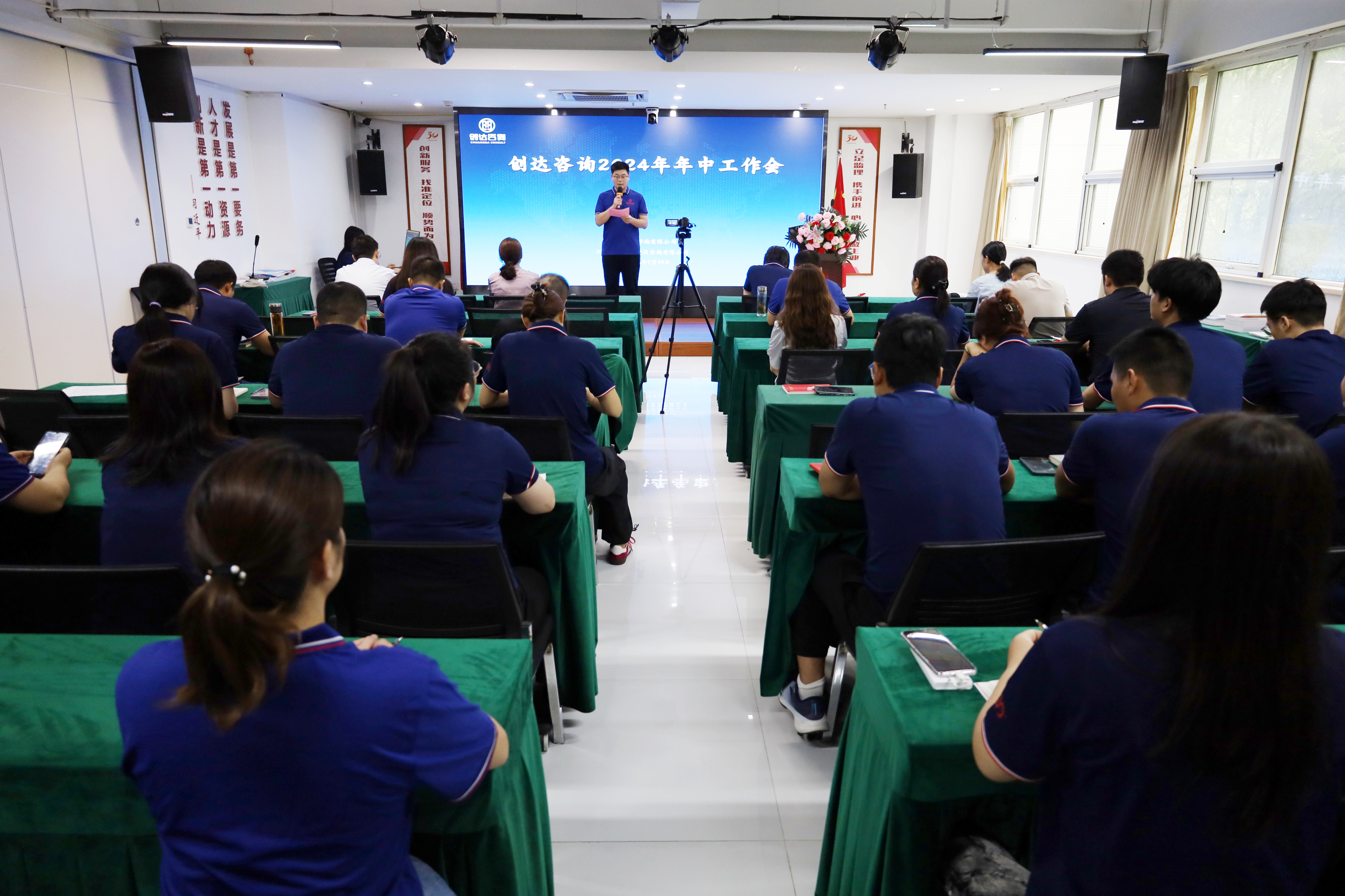 2024年7月19日下午,創達咨詢在總部召開2024年年中工作會,總結上半年成績,錨定下半年工作方向。會議采用線上+線下形式,執行董事徐希萍、副總裁丁東、副總工王恒瑩、集團戰略群總裁王偉、財務總監段靜出席會議,各中心人員、分公司、事業部、項目部負責人及骨干參加會議。